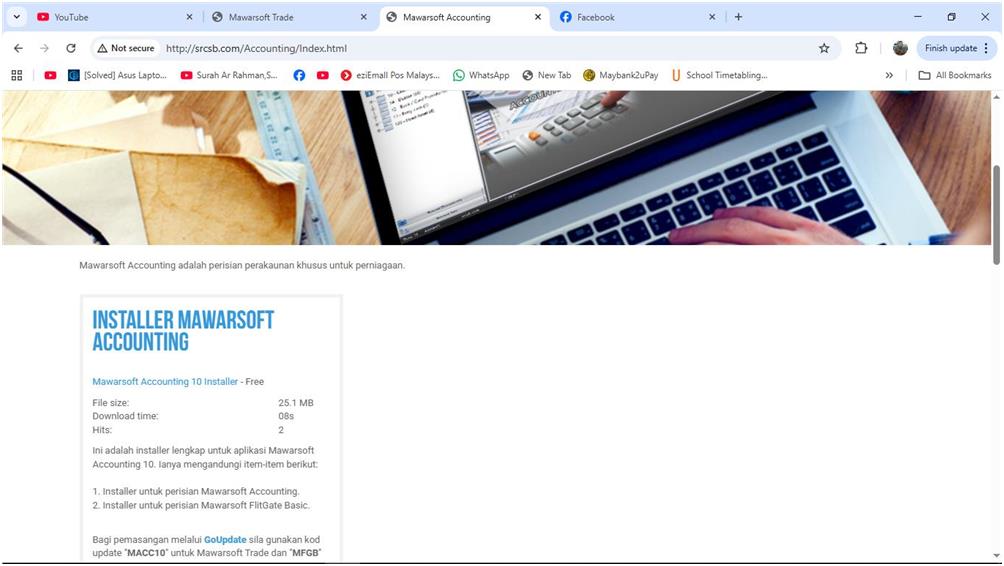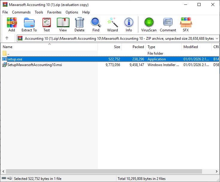 Anda boleh mendapatkan fail installer Mawarsoft Accounting dengan cara memuat turun fail "Mawarsoft Accounting 10.zip" daripada laman utama produk ini.