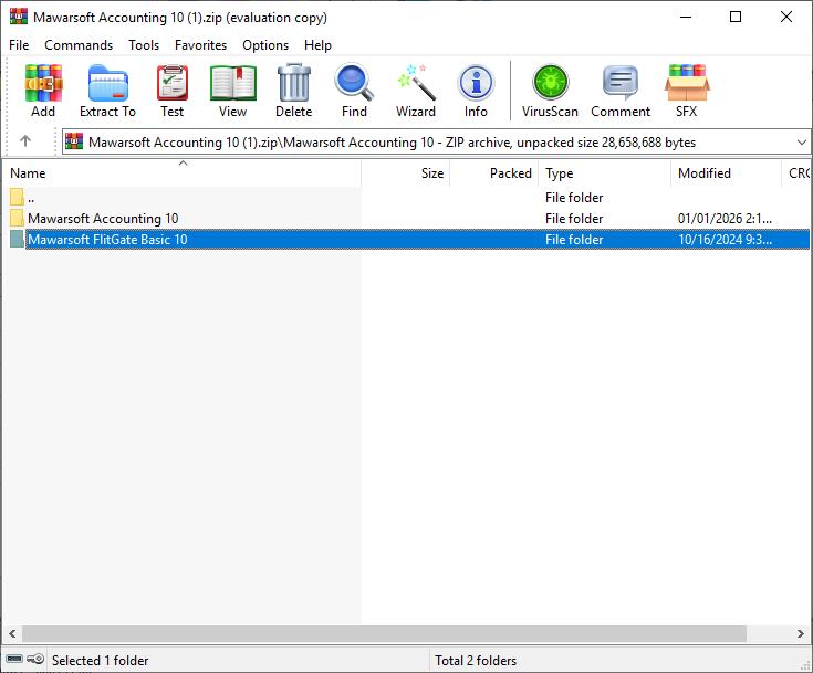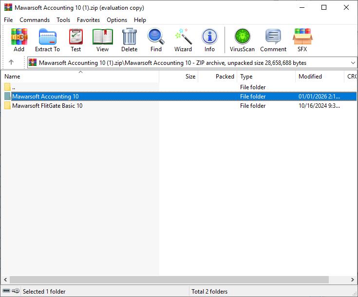 Buka fail .zip atau pendrive yang mengandungi installer Mawarsoft Accounting, kemudian buka folder "Mawarsoft Accounting 10".
