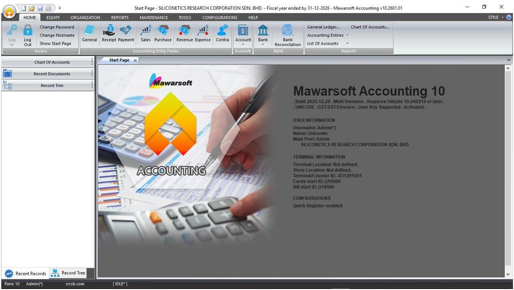 Sekarang anda boleh mula menggunakan perisian Mawarsoft Accounting Untuk menjalankan perisian Mawarsoft Accounting, sila klik pada ikon Mawarsoft Accounting 10 di atas desktop.