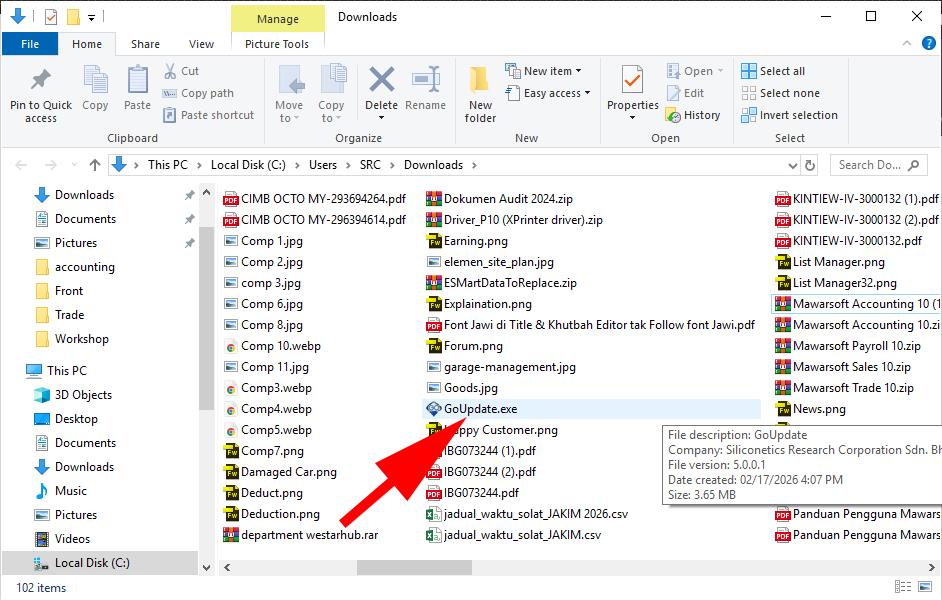 Menggunakan "File Explorer", buka folder "Download" dan jalankan program "GoUpdate.exe".