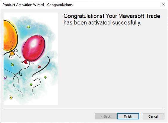 Apabila pengaktifan berjaya, kotak dialog seperti di atas akan dipaparkan. Sekarang anda boleh menggunakan perisian Mawarsoft Trade dengan fungsi penuh.