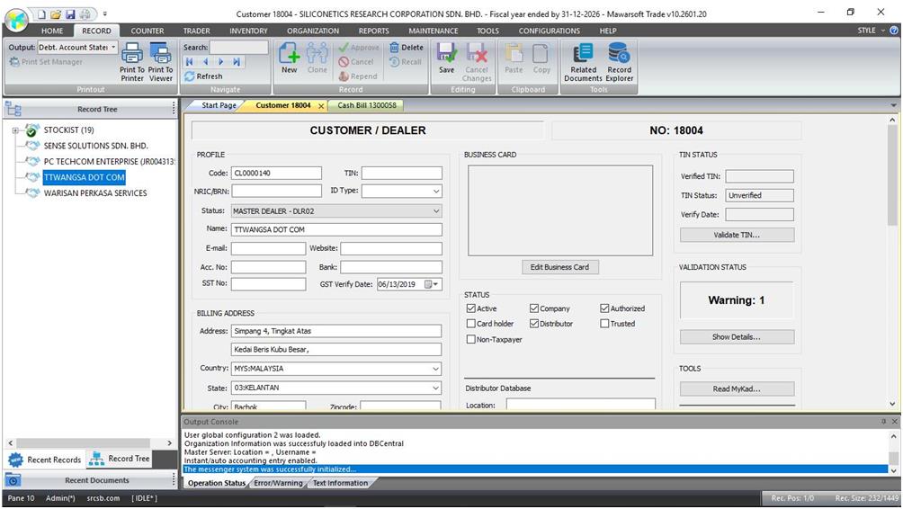 Read moreTrade Spider adalah sistem pengurusan perniagaan yang merangkumi bahagian perakaunan. Walau bagaimana pun entiti-entiti yang terlibat dalam perakaunan dilihat dalam bentuk asal seperti pelanggan, pembekal, barangan, servis dan sebagainya dan bukannya dalam bentuk akaun seperti debtor, kreditor, belian, jualan, pendapatan atau perbelanjaan.