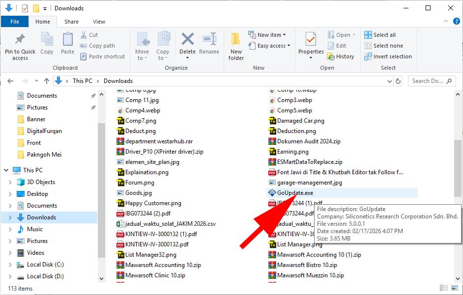 Menggunakan "File Explorer", buka folder "Download" dan jalankan program "GoUpdate.exe".