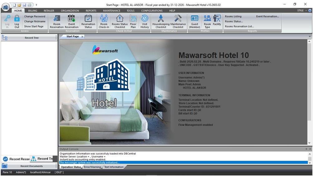 Sekarang anda boleh mula menggunakan perisian Mawarsoft Hotel. Untuk menjalankan Mawarsoft Hotel anda hanya perlu menekan ikon Mawarsoft Hotel 10 di atas desktop.