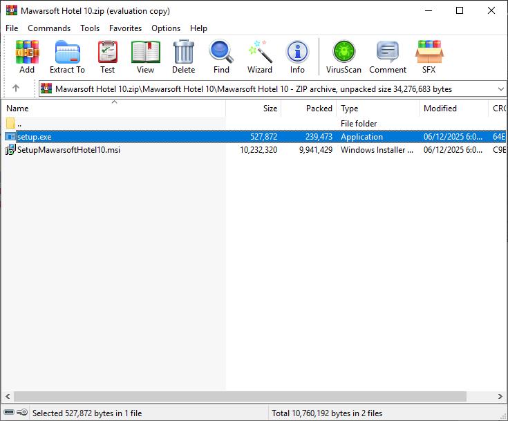 Buka fail .zip atau pendrive yang mengandungi installer Mawarsoft Hotel, kemudian buka folder "Mawarsoft Hotel 10".